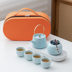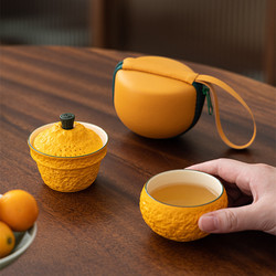 Juego de té de viaje naranja, taza de cerveza rápida de cerámica portátil, 1 tetera, 1 taza de té Personal Gongfu para acampar al aire libre, uso en la oficina