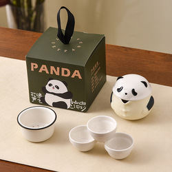 Juego de té de cerámica ecológico portátil con diseño de dibujos animados de Panda, una tetera y Tres tazas de té para viajes al aire libre