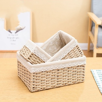 Cesta de almacenamiento tejida de fibra vegetal con estante rectangular de estilo japonés para aperitivos, Juguetes